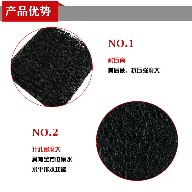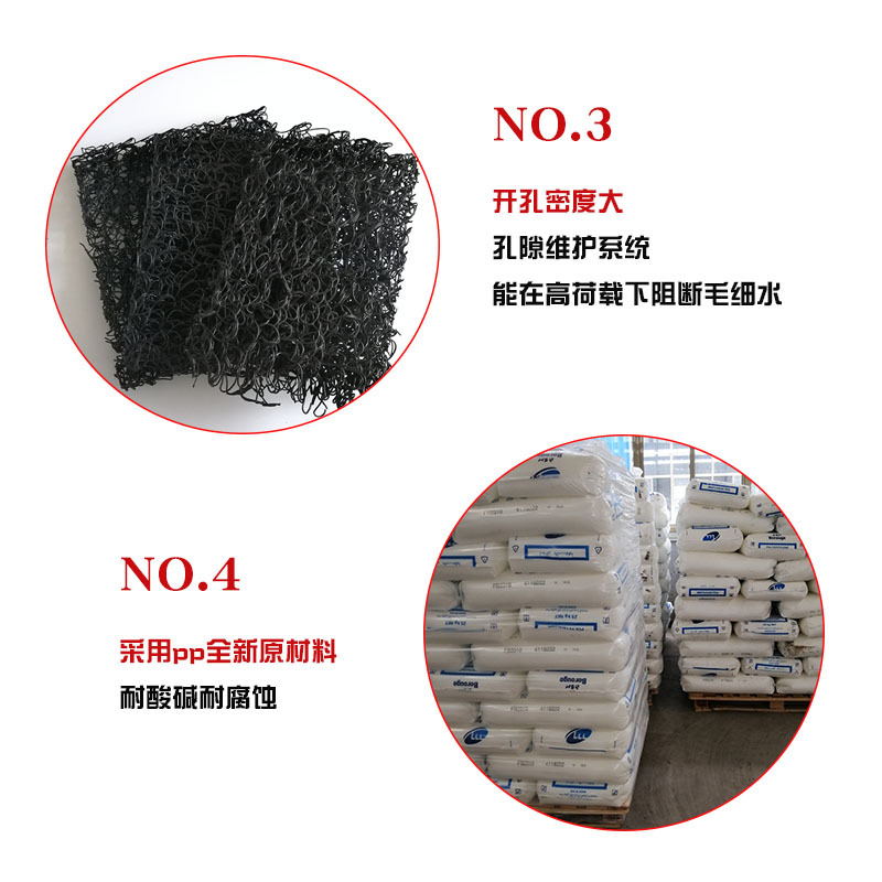 土工席墊與無(wú)紡?fù)凉げ紡?fù)合后,能在掩埋的封閉覆蓋層之下,將匯集滲透過(guò)土壤覆蓋層的雨水或堆場(chǎng)本身排放的污水,利用其獨(dú)特的排水功能,按照工程要求從土工席墊夾層中有序排放,而不會(huì)形成淤堵。因此可以避免因土壤覆蓋層吸水飽和而產(chǎn)生可能的滑動(dòng)問題。土工席墊既能排水,同時(shí)也可排放土壤(特別是垃圾廢棄物)中因發(fā)酵產(chǎn)生的沼氣,在垃圾填埋場(chǎng)中應(yīng)用尤其適用。土工席墊與HDPE土工膜結(jié)合應(yīng)用時(shí),同時(shí)能起到很好地保護(hù)HDPE膜不被穿刺的作用。
